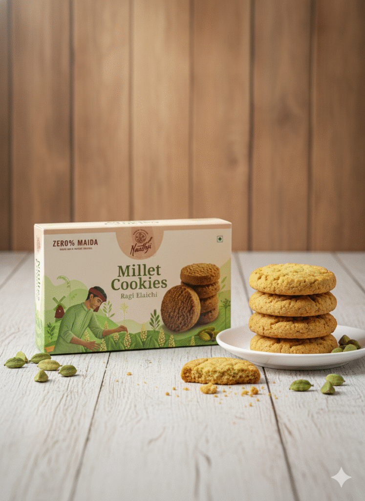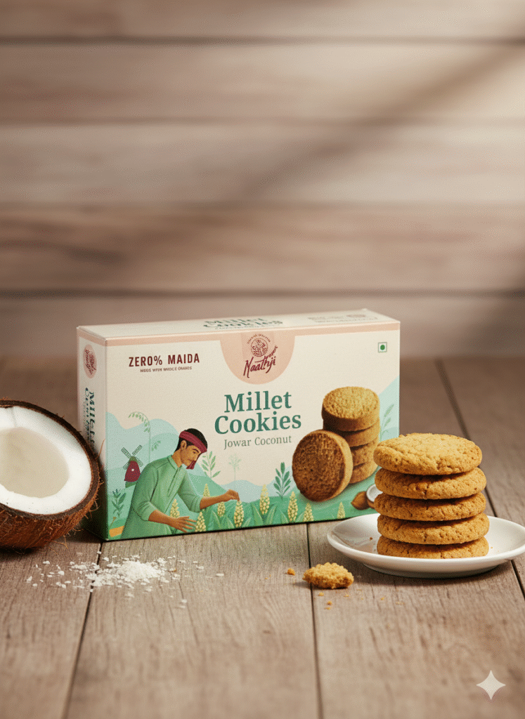 Made with 100% whole grains and absolutely no maida, NaathJi cookies bring you natural nourishment in every bite. Light, wholesome, and packed with real ingredients, they’re the perfect snack for a healthier you.